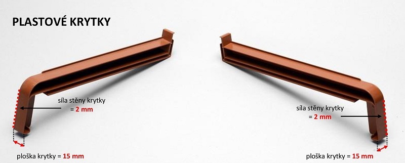 Plastové krytky dodáváme od šíře 110mm. Pro šíře 50mm, 70mm, 90mm je nutné si plastové krytky zkrátit.
