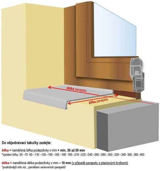 Šířka (hloubka): 50, 70, 90, 110, 130, 150, 165, 180, 195, 210, 225, 240, 260, 280, 300, 320, 340, 360, 380, 400mm (dle přání zákazníka lze vyrobit i 600mm, nejsou však dodávány tak dlouhé krytky - musíte si objednat krytky navíc a nastavit si je)